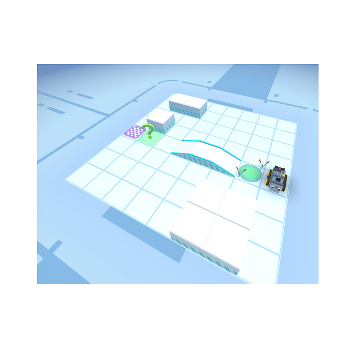 Ученики в трехмерной среде взаимодействуют с роботом, составляя программу для выполнения необходимого задания — проезд по заданным точкам, управление светодиодами и моторами, обработка информации, полученной от датчиков освещенности и расстояния, применение циклов и условий в программировании движений робота и т.п.)