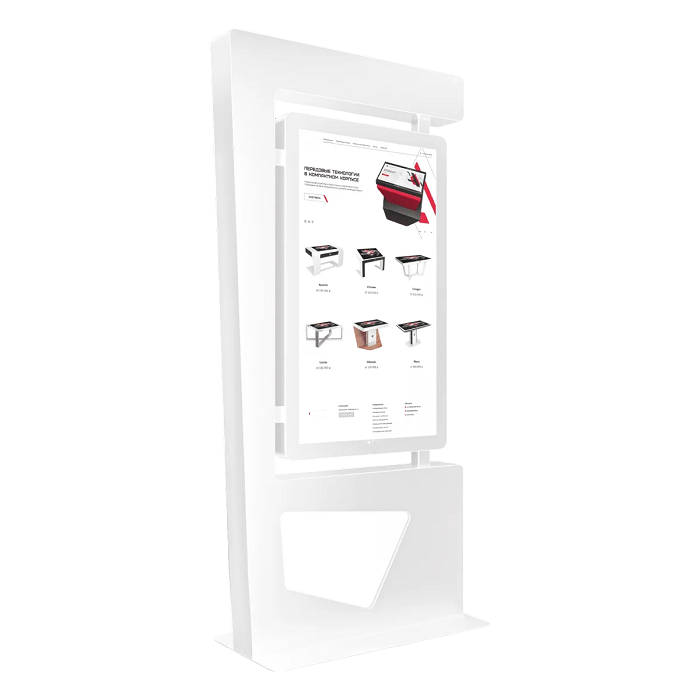 Сенсорный киоск Line 65" — это оригинальное и функциональное решение для автоматизации процессов и привлечения внимания посетителей. Минималистичный корпус с «парящим» сенсорным экраном и геометрическим основанием делает эту модель настоящим акцентом в любом интерьере.