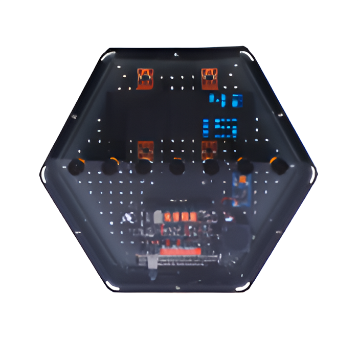 Интерактивный модуль для оформления зон рекреации, кабинетов, IT-полигона, библиотеки, медиа зоны. Модуль реализует с использованием лазерной или фотоэлектрической сенсорной технологии воспроизведение музыки в воздухе с помощью движений рук без использования реальной физической клавиатуры. Модуль выполнен в форме шестиугольной призмы с интерактивным наполнением.