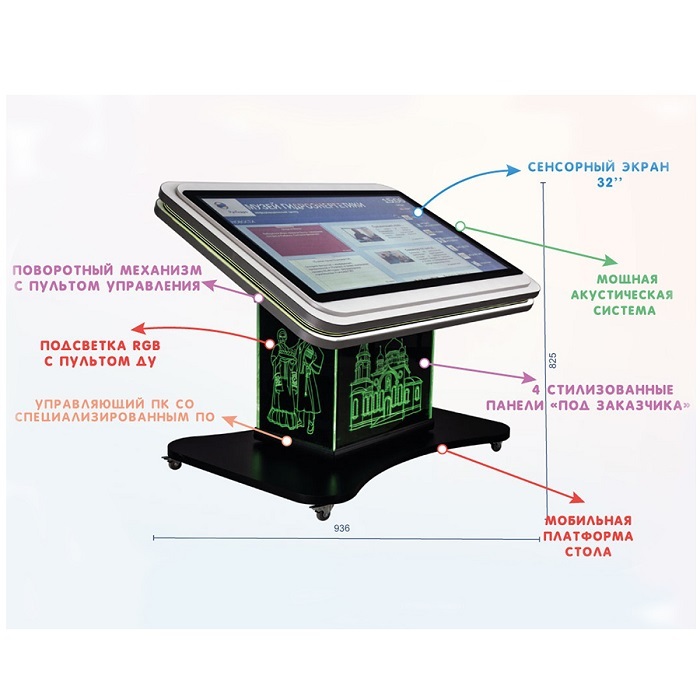 Главная Каталог Интерактивное оборудование Интерактивные столы Интерактивный мультимедийный поворотный стол «Laser museum» 32"