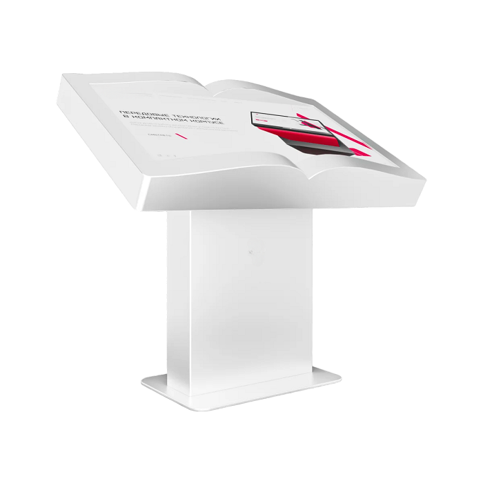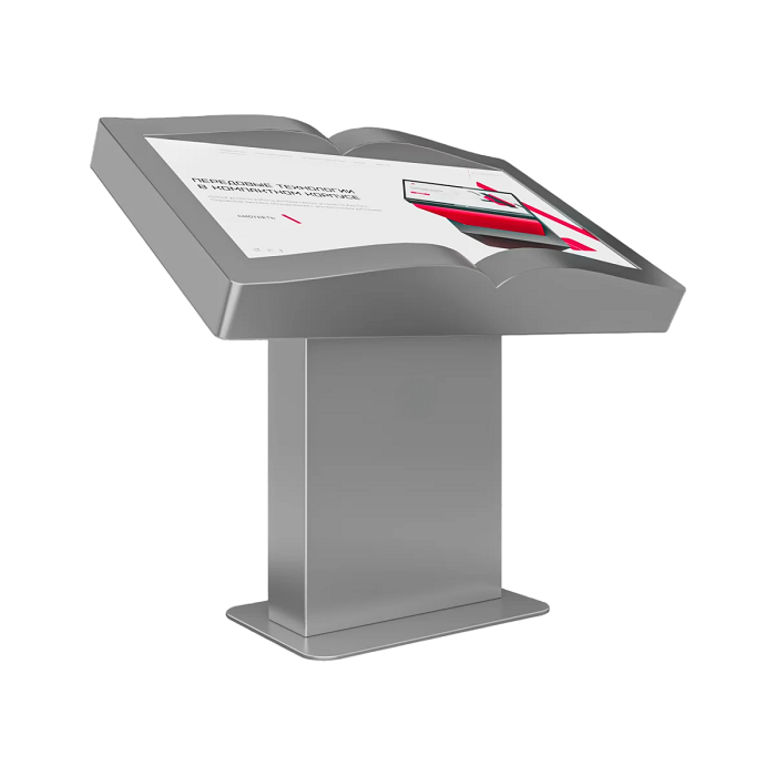 Интерактивный стол Book 65” – устройство, форм-фактор которого реализован в форме раскрытой книги. Механическая регулировка дисплея позволит настроить пользователям оптимальный угол для взаимодействия с программным обеспечением. Оборудование может быть дополнено информационным приложением или интерактивной книгой с эффектом пролистывания страниц.