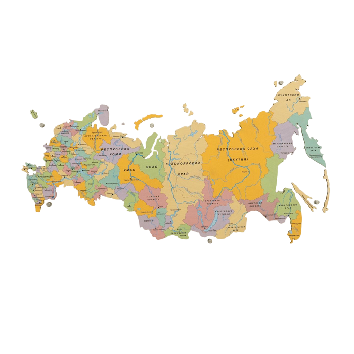 Административно-территориальную карту России можно приобрести и установить на стены – не требуется никаких капитальных ремонтов. Это одновременно эффективный учебный инструмент и декоративное панно, которое украсит образовательное пространство школ и детских садов.