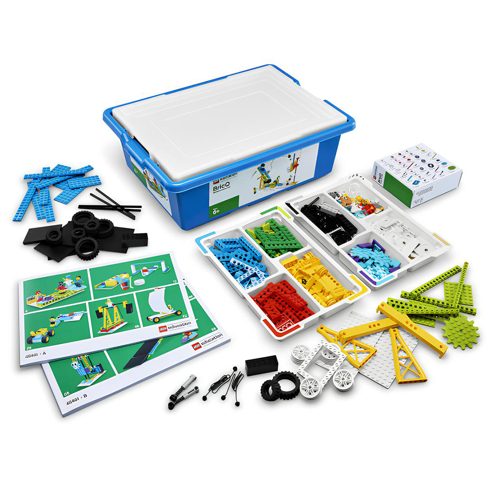 Этот набор включает в себя 523 детали, такие как зубчатые колеса, грузы и пружины, четыре минифигурки и многое другое. Сортировочные лотки с цветовой системой распределения деталей облегчают процесс сборки и разборки моделей после окончания занятия. В набор входят запасные элементы, а также два буклета с инструкциями и идеями для вдохновения, с помощью которых даже те дети, которые раньше никогда не собирали модели из кубиков LEGO, смогут изучать окружающий мир на практике.