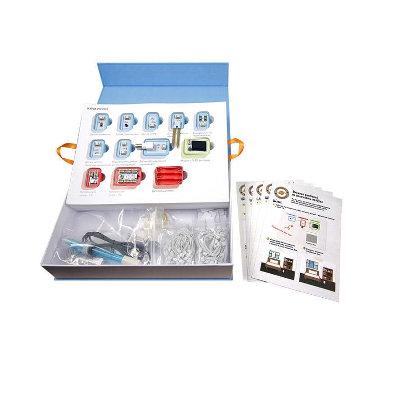 Набор юного исследователя представляет собор набор электронных компонентов, упакованных в безопасные пластиковые блоки, и методические рекомендации по проведению лабораторных работ. Набор предназначен для использования в учреждениях начального образования для получения базовых основных знаний и навыков по основам электротехники и программирования.