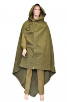 Солдатская плащ-палатка, применяемая в современных вооруженных силах, предназначена для защиты тела и одежды от атмосферных осадков и оперативной организации временного укрытия. Ткань оливкового цвета, с водоотталкивающей пропиткой представляет собой широкое полотно с системой шпеньков и колец. Имеет небольшие габариты в сложенном состоянии и умещается в любой рюкзак или походную сумку. При появлении дождевых или снежных осадков накидывается на тело поверх обмундирования и одежды, и, с помощью шпеньков быстро фиксируется на теле. Имеется большой капюшон на стяжке, позволяющий одевать его поверх защитного шлема. При наличии сильного и холодного ветра эффективно защищает от «продувания» основной одежды прилегающей к телу, способствуя сохранению тепла. Другое предназначение плащ-палатки – использование в качестве временного укрытия.