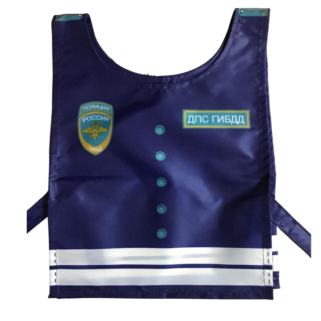 Жилет отлично дополнит игру с автогородком, может быть задействован с набором ролевых жилетов. Даёт возможность ребенку попробовать роль инспектора ДПС. В наличии также есть жезл регулировщика, который можно приобрести отдельно. Жилет удобен в самостоятельном использовании детьми, застёгивается на липучки. Цвет жилета как у формы настоящего инспектора!