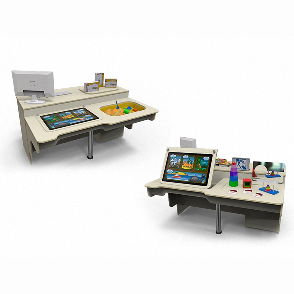 Помимо интерактивной системы, стол психолога-дефектолога, комплектуется пакетом методических пособий психолога, пакетом методических рекомендаций по песочной терапии, а также комплектом деревянных развивающих тренажеров. Наличие сотен предустановленных программ, позволяет специалисту проводить качественную диагностику и коррекцию проблем различных типов и сложности.