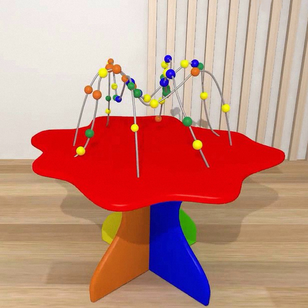 Дети могут весело играть, перемещая разноцветные шарики по металлическим направляющим в разные стороны или одновременно в разных направлениях, и развивая таким образом работу обоих полушарий головного мозга и мелкую моторику в формате непринуждённой игры. Детский игровой стол очень удобен для групповых и индивидуальных развивающих занятий с детьми.