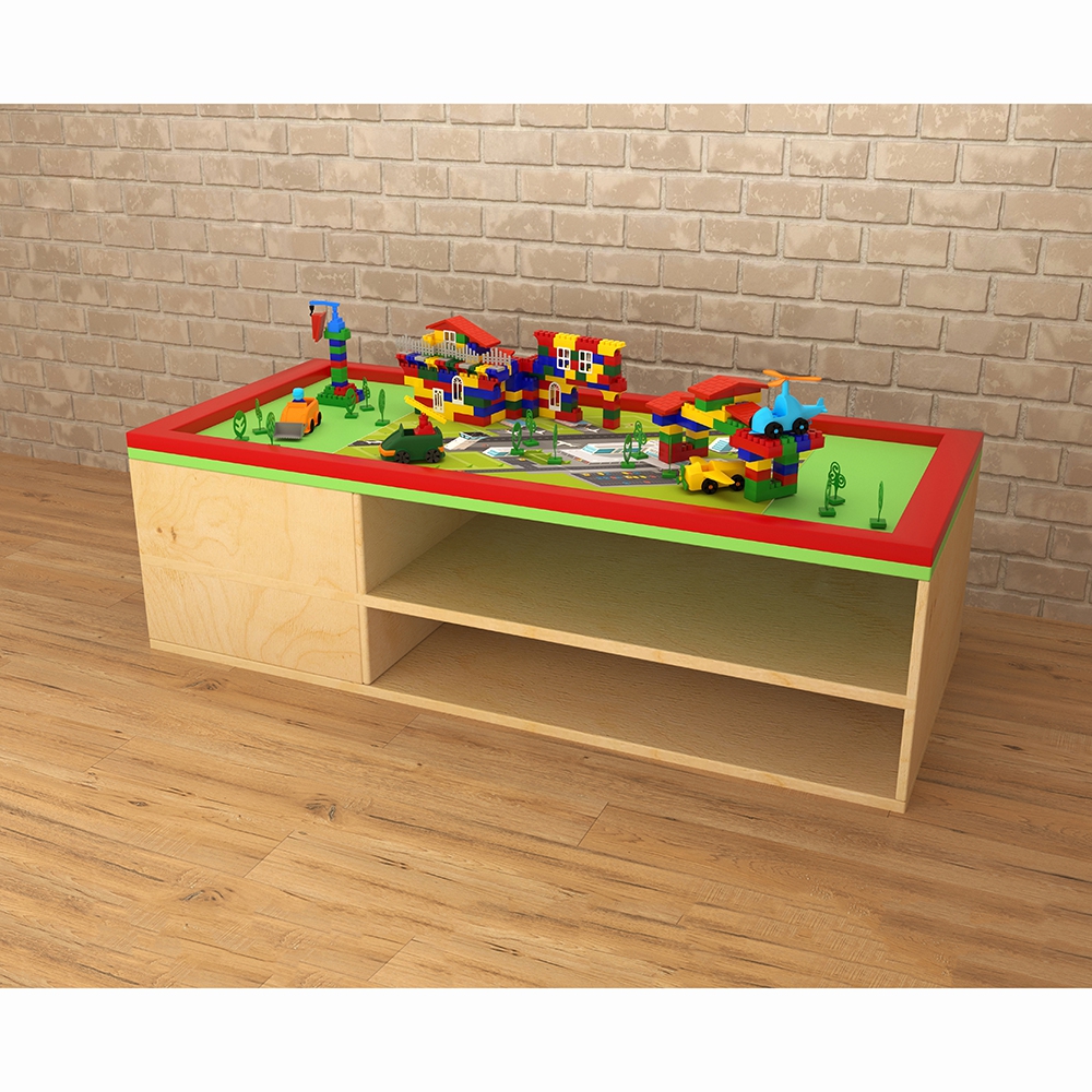 Расположенные на поверхности стола локации полянок с пчёлками и лесными деревьями познакомят ребят с устройством отдельных составляющих природы вокруг. На боковых сторонах стола имеются приспособления для развития мелкой моторики – счёты, меловая доска и т.д. В открытых полках стола расположены боксы, наполнение каждого – это отдельная развивающая игра, предназначенная для развития разнообразных навыков у детей.