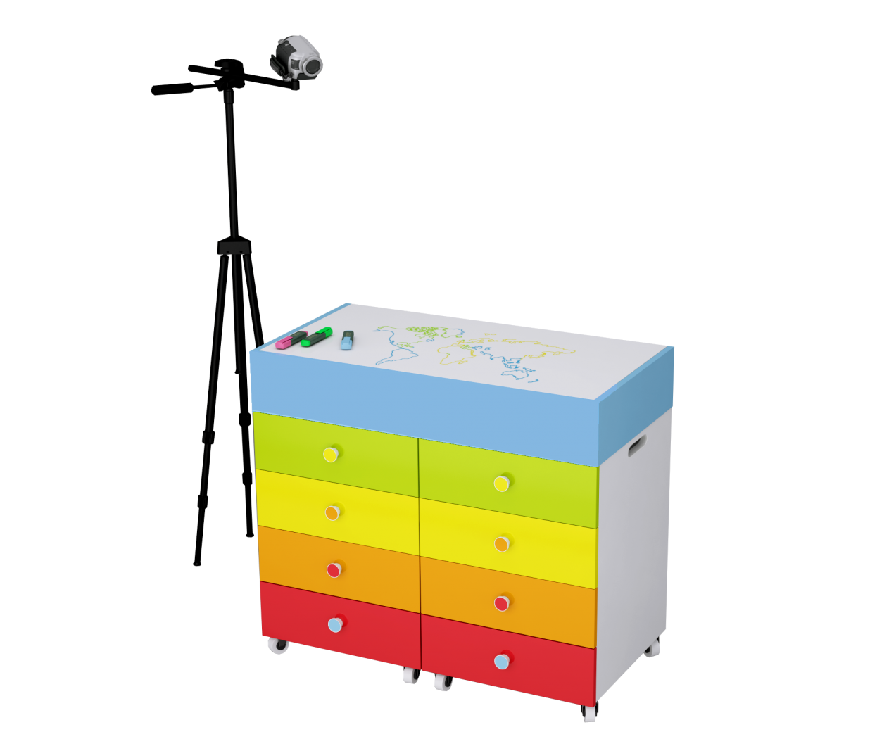 Стол воспитателя дополняет штатив с камерой, с помощью которых, изображение выводится на экран интерактивной доски или сенсорной панели. Таким образом, педагог наглядно и в реальном времени, показывает детям, что нужно делать.