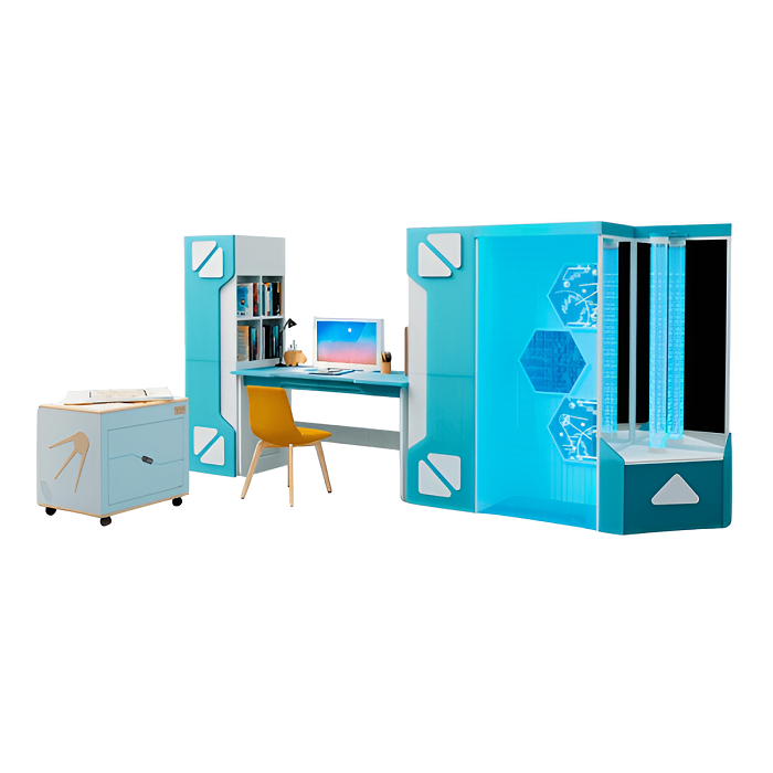Комплекс включает встроенную световую песочницу, место под конструирование с мягким магнитным конструктором «МАККИ 37», место психологической разгрузки с фиброоптическим душем и воздушно-пузырьковой колонной, встроенную музыкальную систему и многое другое.
