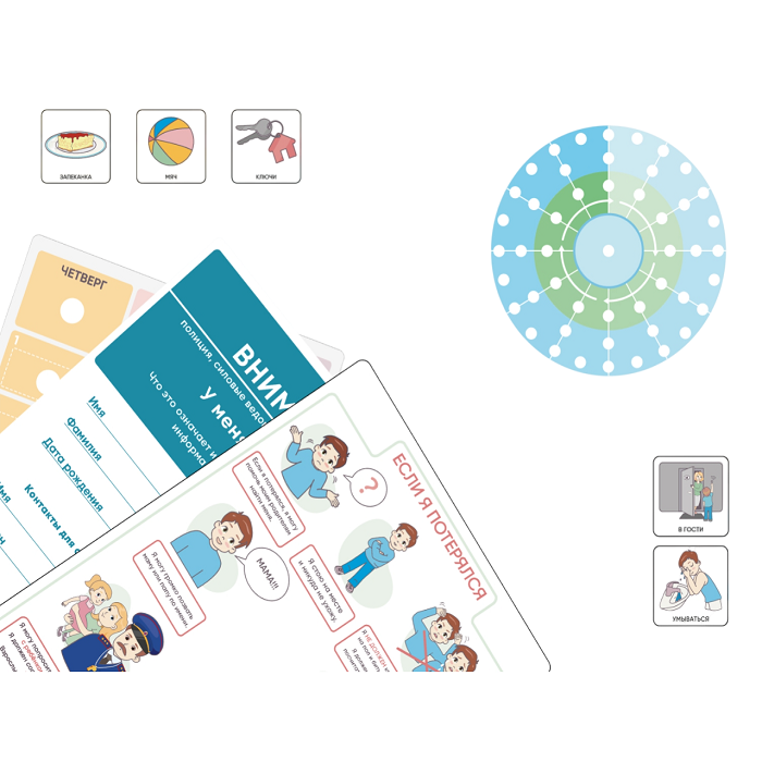 Набор карточек «Все включено» объединяет в себе все карточки из наборов «Ученик», «Рутинки» и «Динамика» и дополнен визуализацией «Если я потерялся».