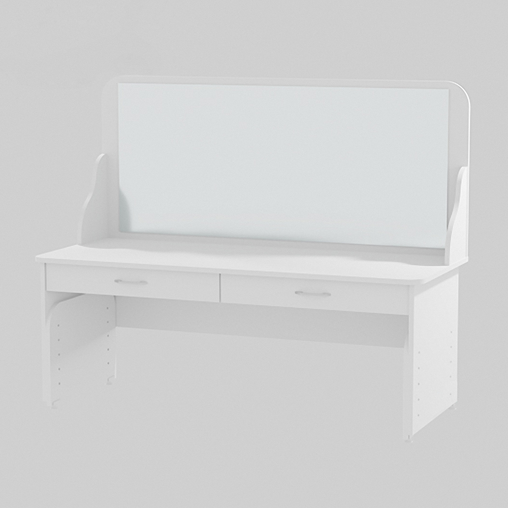 В столе есть два выдвижных невысоких ящика. В них поместятся небольшие предметы. Они отлично подойдут для тетрадей, различной канцелярии, маленьких книг, альбомов для рисования и т.д. В центре расположено большое зеркало для проведения различных логопедических занятий.
