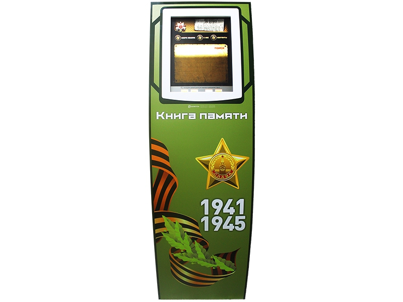 Терминал "Книга Памяти" представляет собой интерактивное устройство с сенсорной системой управления. Простая система управления терминалом позволяет получить данные об участниках Великой Отечественной войны.