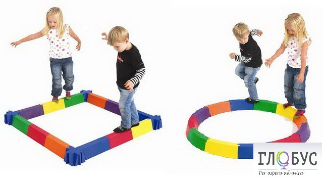 Дорожка состоит из 28 разноцветных деталей, которые можно соединить между собой в замкнутые пути, в форме кольца, а можно в форме четырехугольника с помощью 4 угловых крестообразных элементов. А можно обе формы одновременно. Дорожки изготовлены из прочного пластика с мягкими линиями против скольжения. Развивает моторику, баланс, физическое развитие.