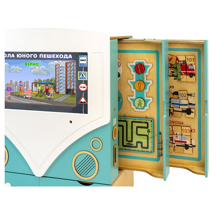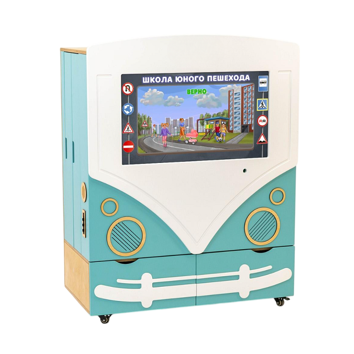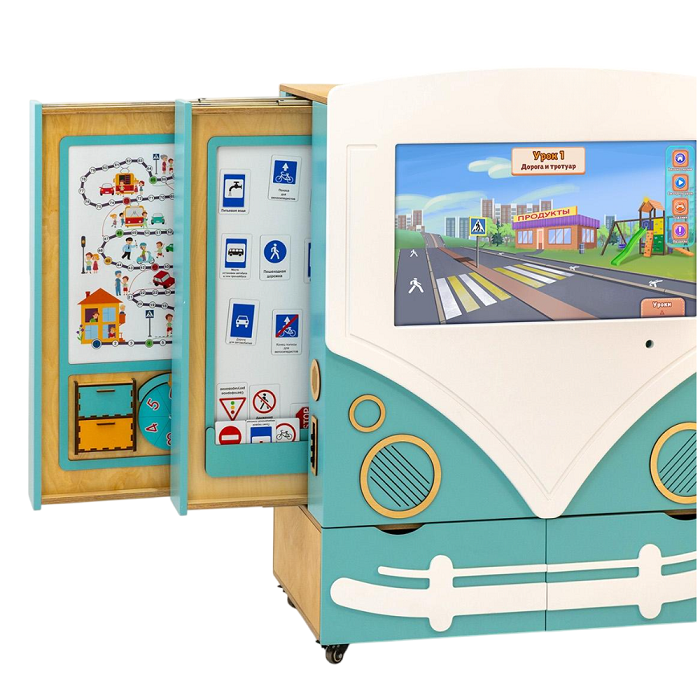 Методический интерактивный комплекс состоит из передней панели с мультимедийным монитором и четырёх выдвижных модулей по бокам. Выполнен в дизайне «Автобус». Главная тематика — изучение правил дорожного движения.