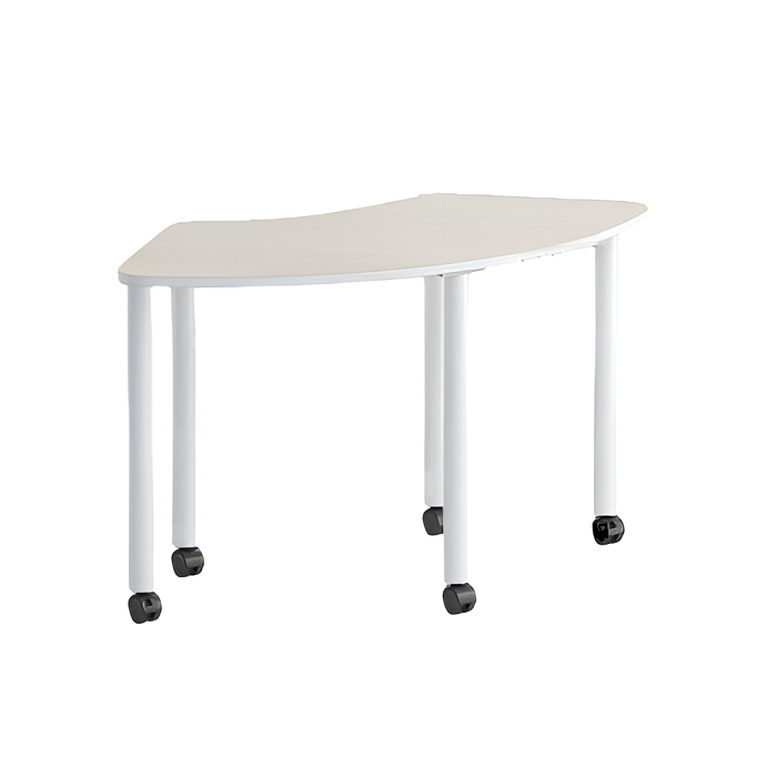 Стол РОБИК выполнен из ламинированной ДСП 16 мм, края обрамлены кромкой ПВХ 2 мм, изогнутая форма столешницы имеет форму сектора в 90 градусов от кольца. Углы столешницы закруглены радиусом. Столешница установлена на пять металлических опор с колёсиками (два колёсика с тормозом).