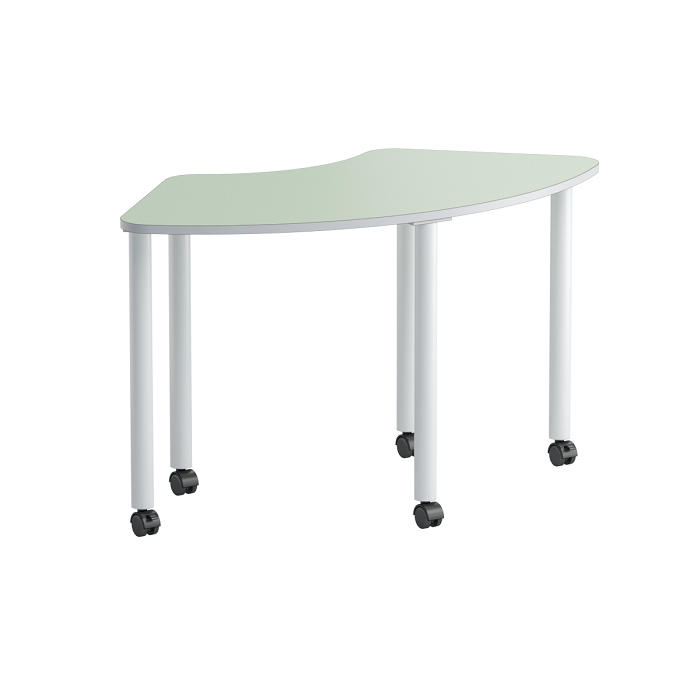 Стол РОБИК выполнен из ламинированной ДСП 16 мм, края обрамлены кромкой ПВХ 2 мм, изогнутая форма столешницы имеет форму сектора в 90 градусов от кольца. Углы столешницы закруглены радиусом. Столешница установлена на пять металлических опор с колёсиками (два колёсика с тормозом).