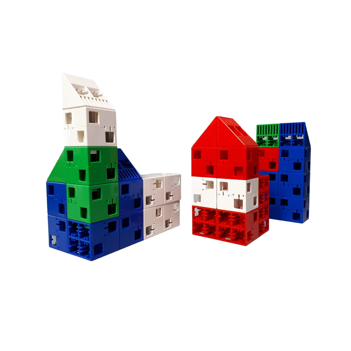 Оригинальная запатентованная конструкция позволяет соединять их буквально во всех направлениях (более 50 комбинаций), вплоть до соединения вдоль главной диагонали кубов. Это значительно расширяет возможности по конструированию самых разнообразных объектов, начиная от традиционных дорожек и домиков, животных и машин и заканчивая фигурками современных роботов.
