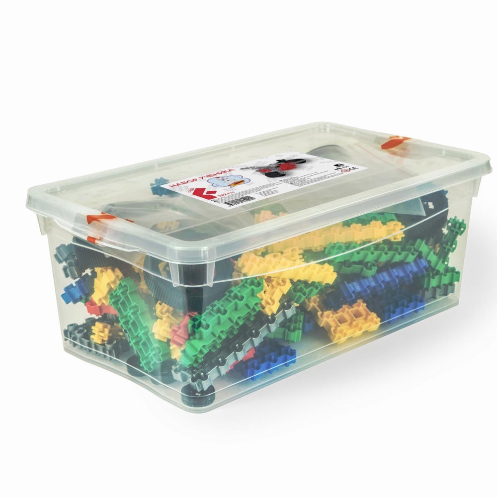 Индивидуальный набор для творчества. Включает все типы базовых деталей (12 разных) пяти цветов, а так же защелки и переходники, колеса и детали для подвижных соединений. Упакован в пластиковый контейнер. Мелкие детали в пластиковом пакете. Детали подобраны в оптимальной пропорции. Набор рассчитан на 1-2 учащихся.