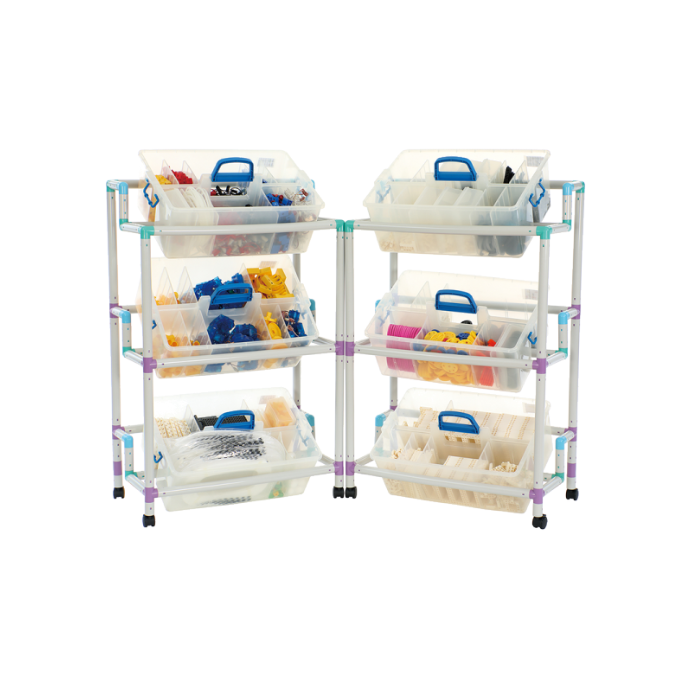 • Система хранения: Набор организован системой хранения, включающей контейнеры и стойки, которые позволяют хранить выполненные работы и готовые проекты.
