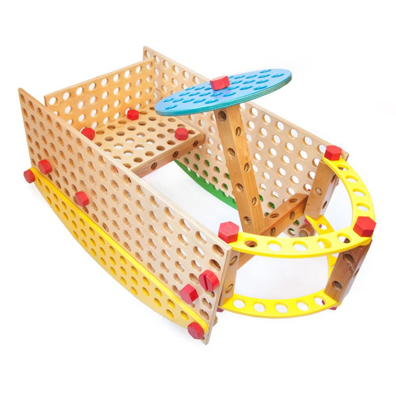 В комплекте деревянные винты и болты. Данная комплектация дает возможность собрать три модели водного транспорта - кораблик, катер и лодочку. Готовая модель станет результатом совместной деятельности ребенка и педагога нескольких детей.
