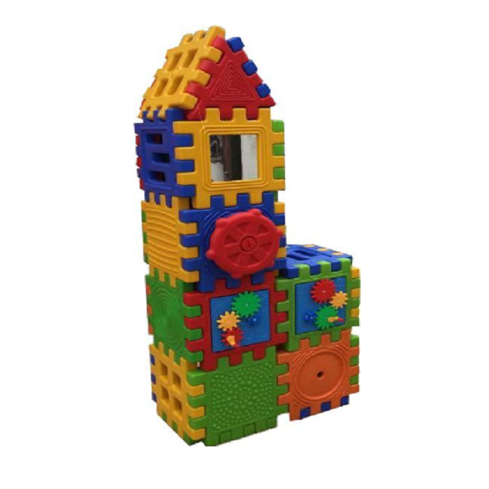 Эти большие блоки – мечта каждого ребёнка! Кому не хотелось смастерить себе шалаш или оборудовать коробку из-под техники для того, чтобы поиграть в импровизированный дом. Этот конструктор для двухмерного и трёхмерного моделирования позволяет детям построить себе башню, домик или даже ракету, в которые можно забраться и совершить космический полёт! Данная игровая модель идеально подходит для развития детского воображения и пространственного восприятия! Каждая деталь может соединяться с другим элементом со всех сторон благодаря внешним слотам, таким образом можно комбинировать абсолютно любые детали, тем самым развивая дизайнерские и конструкторские навыки. Кроме того, поверхность каждой детали оригинальна – имеет либо отверстия разных геометрических форм, либо нанесённый узор для развития тактильных ощущений, либо к ней крепится ещё одна деталь! Например, разных размеров шестерёнки, которые можно с удовольствием вращать! Многофункциональный конструктор – настоящая сокровищница для многостороннего развития детей!