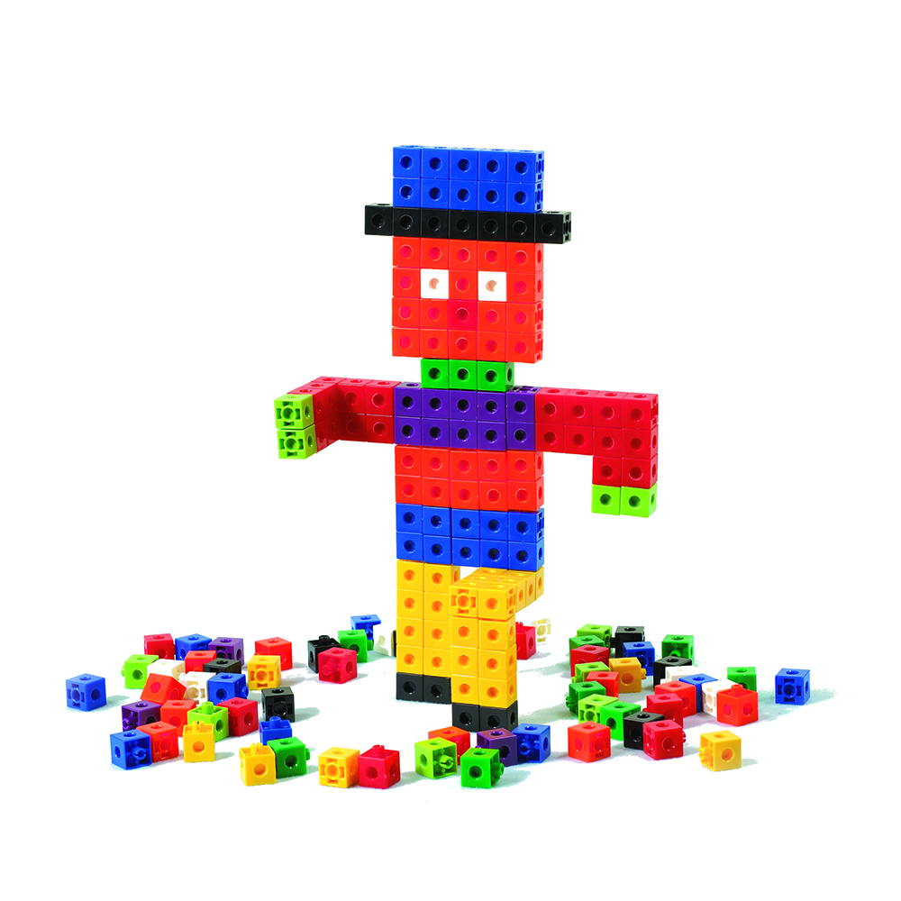1000 соединяющих между собой кубиков ярких цветов. Кубики плотно и без особых усилий соединяются между собой, что позволяет ребенку строить множество разнообразных моделей. Соединяющиеся кубики имеют отверстия, в которые можно вставлять шипы других кубиков, состыковывая их вместе. Кубики помогают малышу научиться считать, сортировать, классифицировать и просто строить башни, замки, гаражи, самолеты.