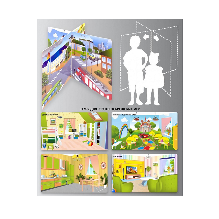 Напольный стенд для сюжетно-ролевых игр 4-х сторонний (детская комната, гостиная, кухня, комната в детском саду) - «globural.ru» - Архангельск