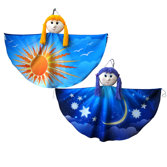 В набор входят платковые куклы с изображениями дня и ночи.