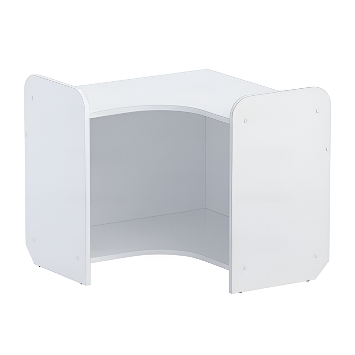 Конструкция стеллажа не имеет острых граней и углов. Тумба стеллажа установлена на пластиковые подпятники.