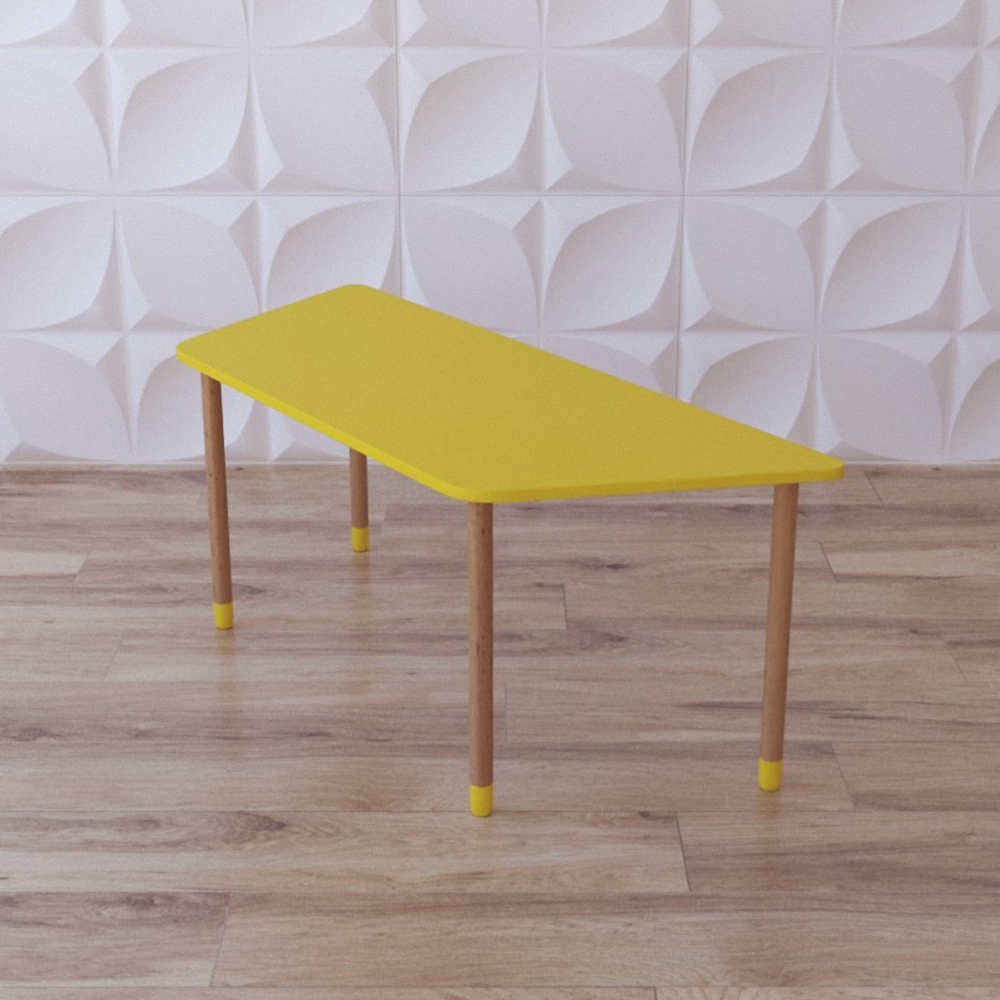 Детский деревянный стол “Яркая трапеция” окрашен в спокойные цвета, которые не отвлекают от учёбы и имеет максимально простую конструкцию – состоит из 4 ножек и столешницы трапецевидной формы; необходим для обустройства индивидуальными учебными местами групп в ДОУ, начальных школ и школ искусств. Группа из таких столиков не только обеспечит учебными местами учреждение, но и украсит его, придав интерьеру законченный вид благодаря универсальному виду каждого из элементов группы.