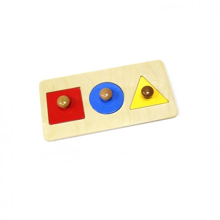 Главная Каталог Подготовительная группа и детский сад Монтессори Для самых маленьких Геометрические пазлы: квадрат, круг, треугольник на подставке