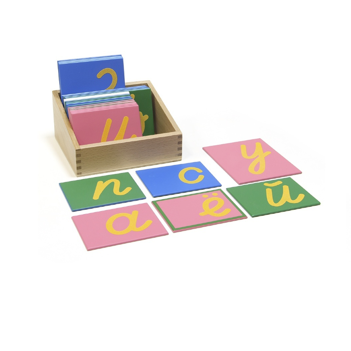 Главная Каталог Подготовительная группа и детский сад Монтессори Русский язык Трехцветные шероховатые буквы-прописные наклонные