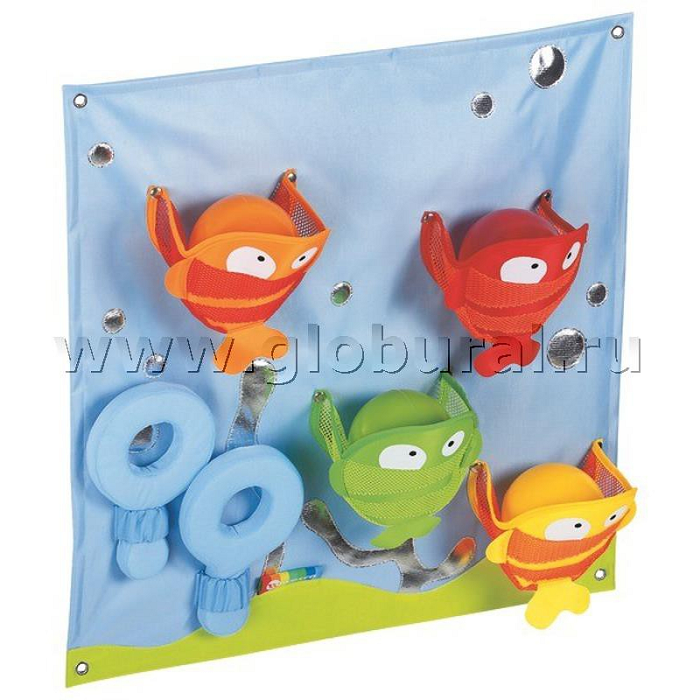 Используя лопатку, ребенок должен поставить каждый цветной шар тщательно в рот соответствующей рыбке.
