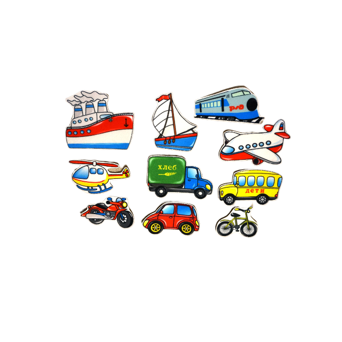 Данный набор подходит для работы с игровым полем. Благодаря данному набору ваш ребенок узнает названия основных видов транспорта, цветов, размеров. Также данный набор будет верным помощником в освоении счета. Подойдет он и педагогам для занятий в детских садах, студиях развития для коллективных занятий в качестве демонстрационного материала.