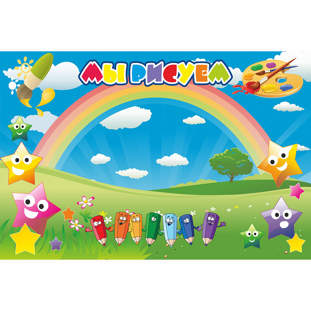 Магнитный стенд для рисунков является не только практичным инструментом, но и отличным средством для развития творческого потенциала детей. Этот вариант стенда "Мы рисуем" представляет компания весёлых разноцветных Звёздочек. Яркая радуга и легкие плывущие облака в залитом солнечными лучами небе, развесёлая компания карандашей всех цветов радуги на лужайке, а также разноцветные буквы названия стенда создают радостное творческое настроения детям, а удобное крепление на магниты позволит без проблем разместить рисунки в любом месте стенда.