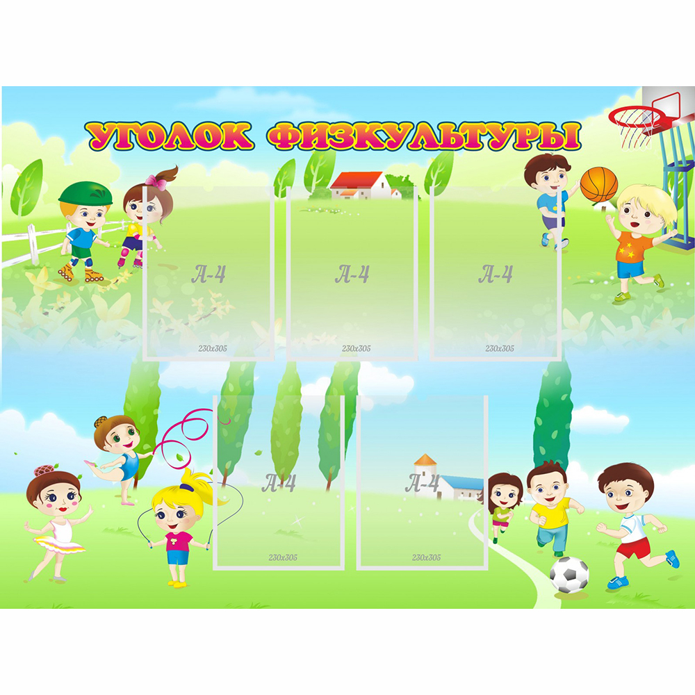 Здоровый образ жизни — это обязательно! Особенно в детских садах, где малыши впитывают всю информацию. И стенд в виде уголка физкультуры отличное решение для привлечения внимания ребят, для помещения объявлений о соревнованиях и конкурсах, прекрасная идея, чтобы украсить физкультурный зал.