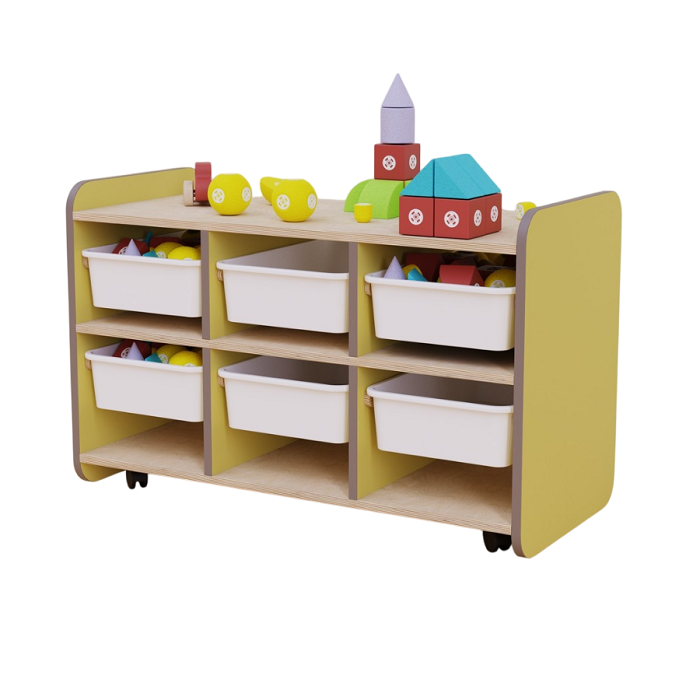 Оборудование является прекрасным решением для современных детских садов и других детских образовательных учреждений, где важны удобство, безопасность и гигиена. Практичные ящики полностью вынимаются из шкафа для очистки и дезинфекции. Они легкие и прочные, и дети могут самостоятельно ими пользоваться, чтобы достать или положить игрушку. Высота модуля также позволяет размещать на поверхности конструкции обучающие игры и дидактическое оборудование.