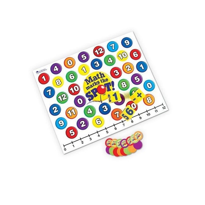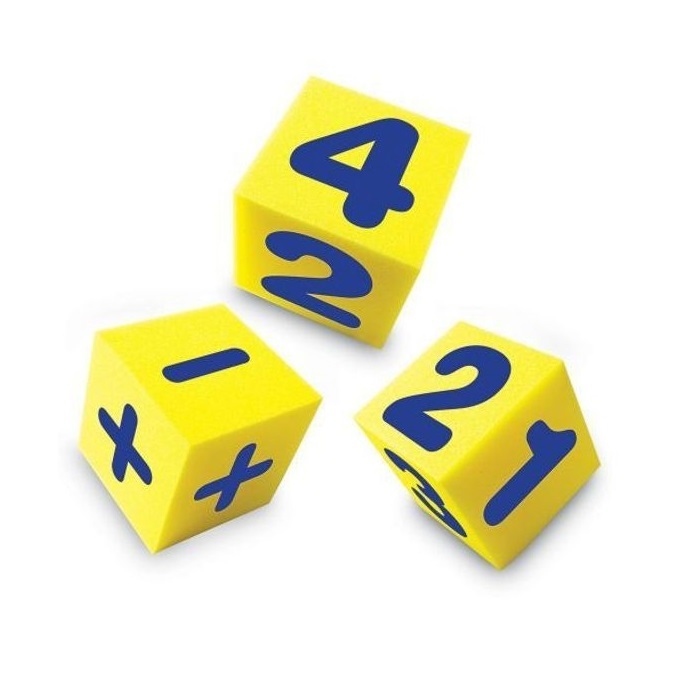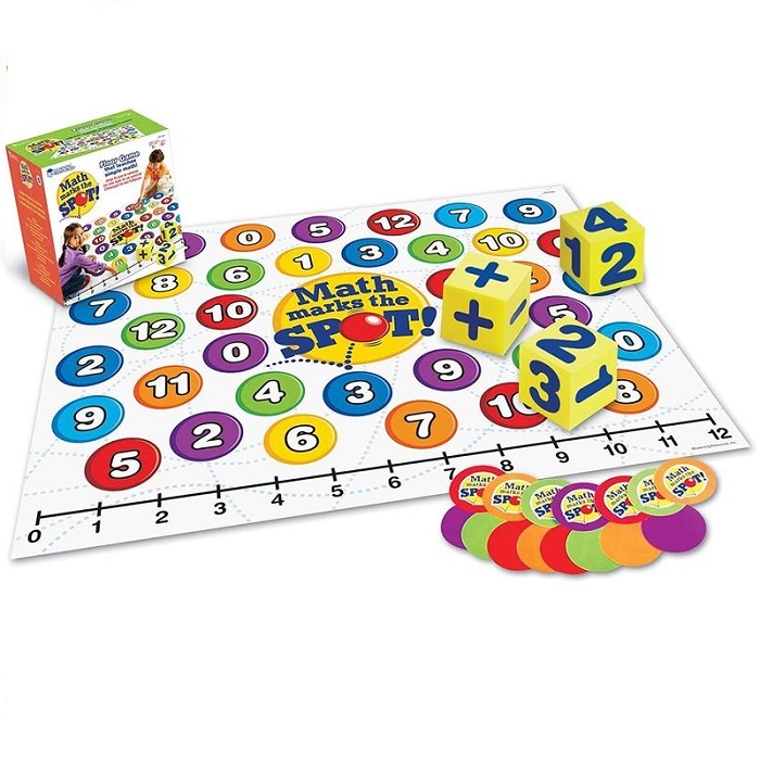 С этой математической игрой можно заставить детей думать в движении (когда дети бросают кости, решают уравнение, а затем прыгают на ответ). Мат имеет все возможные ответы на задачи сложения и вычитания, которые используют числа 1-6.
