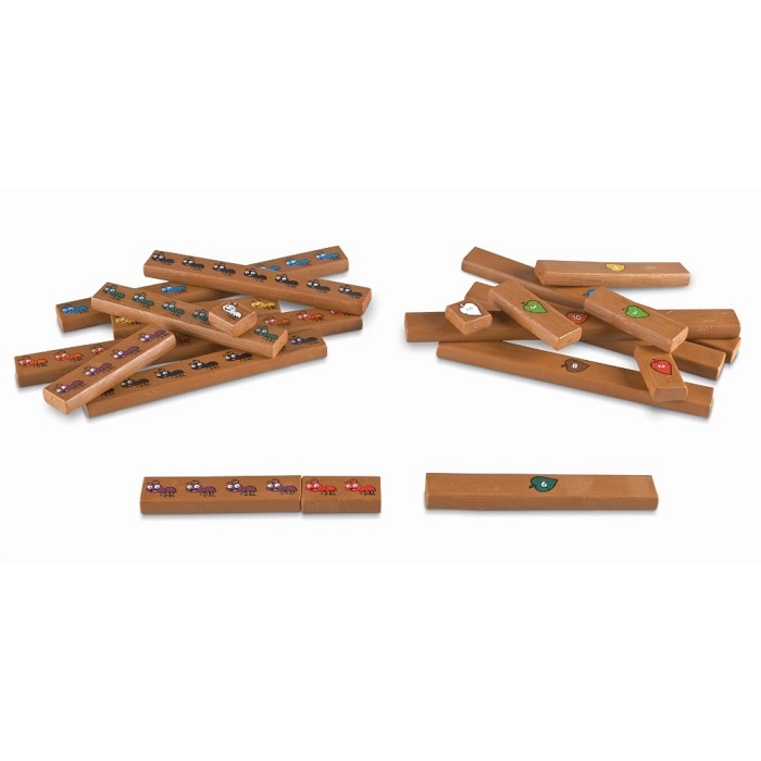На стержнях соответственно размеру нанесены муравьи от 1 до 10 с одной стороны и листик с общим количеством с другой.