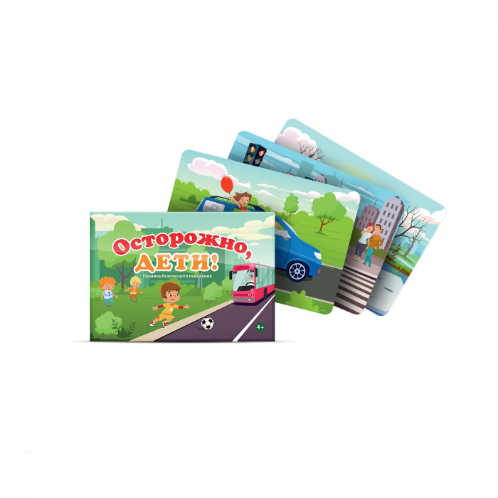 Осторожно дети — набор сюжетных открыток с потенциально опасными ситуациями в жизни детей: выбегание на проезжую часть, «игра в доктора» с настоящими таблетками, игры на строительной площадке и другими. Открытки подходят для занятий с детьми от 4-х лет. Сюжеты реалистичны и дополнены деталями, которые помогут объяснить, почему ситуация опасна. Например: по пешеходному переходу можно переходить улицу. Но когда на светофоре горит красный свет — нельзя, даже если друг упорно тянет тебя за руку.
