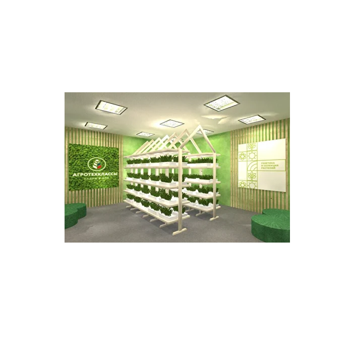 Гидропонная теплица для выращивания салатных, овощных и ягодных культур, что создаст настоящий зелёный сад в школах, где каждый ученик сможет не только наблюдать за процессом роста растений, но и активно участвовать в нём.