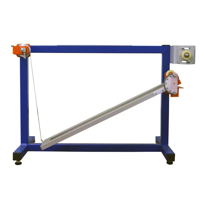 На платформе закреплена шкала, а на основании стрелка для определения угла наклона платформы. Конструкция основания обеспечивает закрепление и легкую замену опорных пластин из различных материалов. С одной стороны основания закреплен роликовый блок для перекидывания нити подвеса.