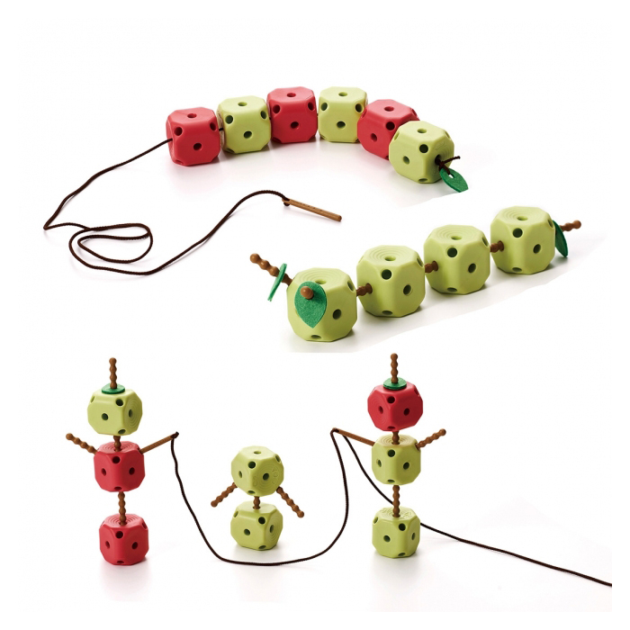 Набор строительных блоков различных уровней сложности. Гусениц можно использовать для соединения яблок в сложные структуры, это упражнение улучшает моторику рук, глаз и запускает мыслительные процессы. Набор подходит как для детей младшего дошкольного возраста , так и для детей постарше.