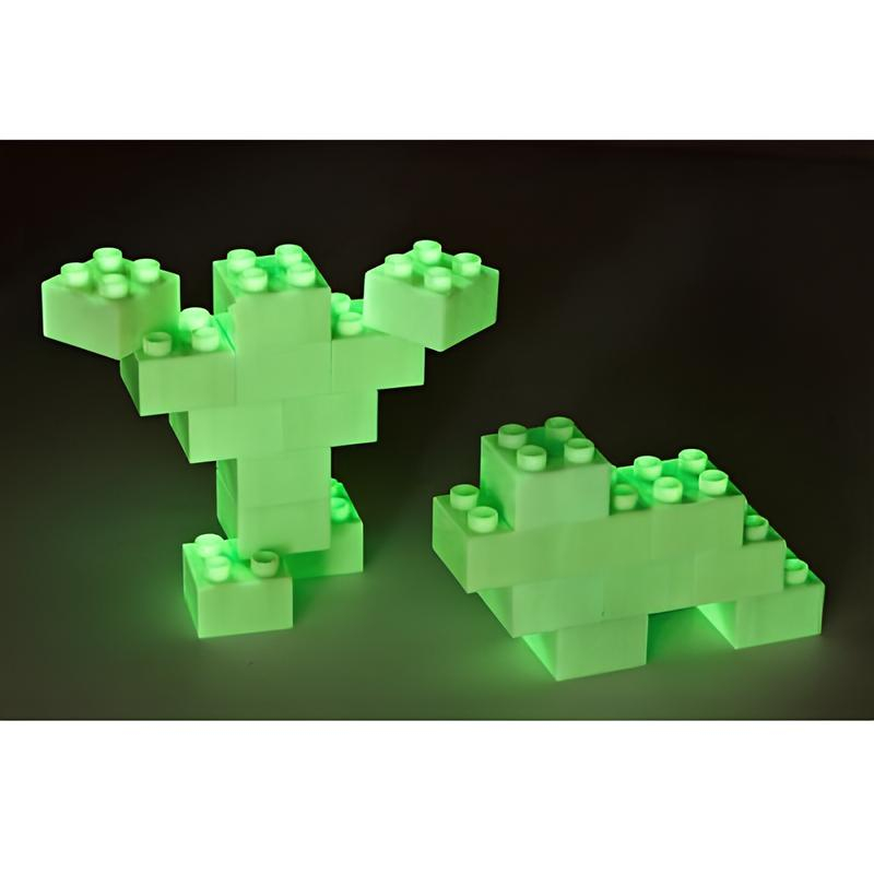 Светящиеся кирпичики порадуют детей своей необычностью и красивым свечением в темной комнате. Блоки и основания могут использоваться совместно с другими блоками конструкторов, совместимы с конструктором LEGO Duplo и другими аналогичными конструкторами. Все блоки конструктора изготовлены с предельной точностью из безопасного ABS - пластика с применением только безопасных пищевых красителей.