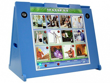 В комплекте со стендом поставляются карточки с контурным изображением профессий, что позволяет разнообразить игровую форму обучения. Дети, поделенные на две команды, выбирают изображение, которое, по их мнению, соответствует заданной профессии, чей контур прорисован на карточке, показанной воспитателем. Выбор осуществляется путем нажатия на светоиндикационную кнопку. Выигрывает команда, давшая первой наибольшее количество верных ответов.