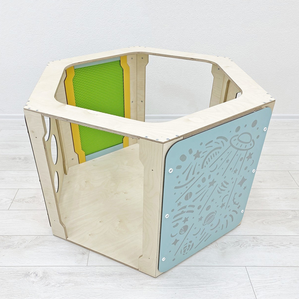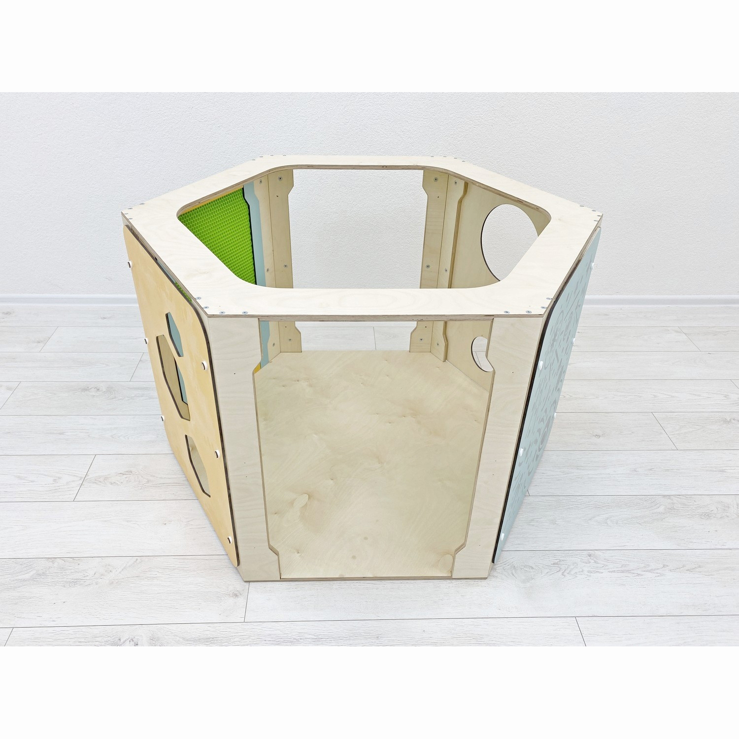 Новый креативный вариант традиционных детских домиков – шестигранные модули-конструкторы, позволяющие создавать трансформируемое игровое пространство.