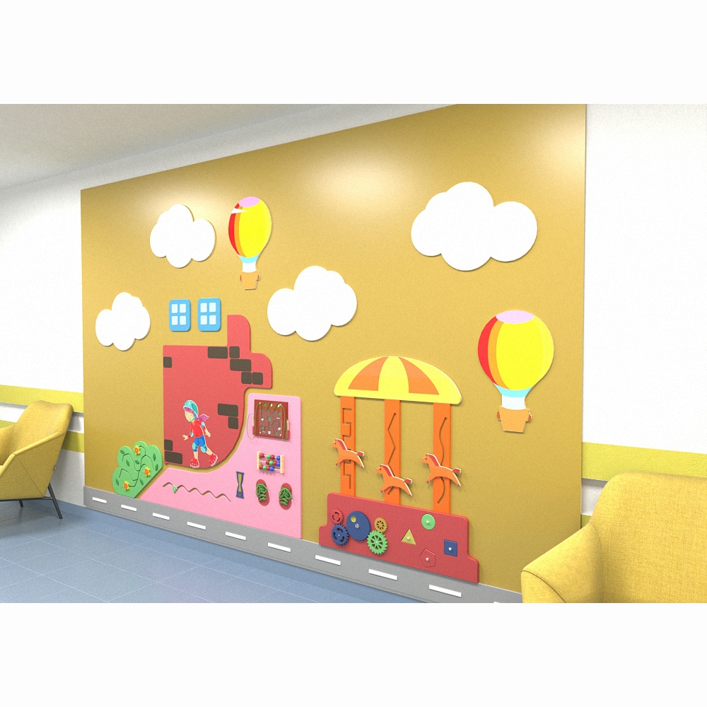 Огромная настенная панель «Активный отдых» - идеальное решение в вопросе оформления детской игровой зоны для просторных помещений. Выполнена в едином стиле и оснащена множеством развивающих и развлекательных приспособлений.