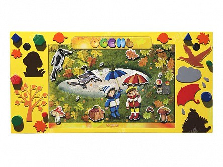 В комплекте со стендом поставляются карточки с изображениями осенней атрибутики, что позволяет проводить обучение в игровой форме. Дети выбирают изображение, которое, по их мнению, соответствует элементу на карточке, показанной воспитателем.